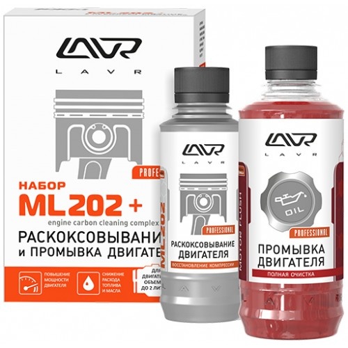 Набор: Раскоксовывание двигателя ML-202 + Промывка двигателя (для двигателей до 2-х литров 185мл/ 330мл) LAVR Engine carbon cleaning complex
