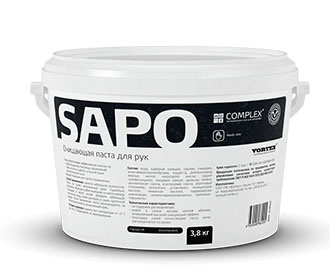 ОЧИЩАЮЩАЯ ПАСТА ДЛЯ РУКБЕРЕЖНОЕ ОЧИЩЕНИЕ ВАШИХ РУК ПОСЛЕ ЛЮБЫХ РАБОТ!Обеспечивает бережное и эффективное удаление любых устойчивых загрязнений - нефтепродуктов, сажи, графита, угольной пыли.В состав входят ухаживающие добавки (аллантоин, глицерин и D - пантенол) которые питают и смягчают кожу рук, оказывают противовоспалительное и успокаивающее действие.Не содержит растворителей.Способ применения:Продукт готов к применению. Нанести небольшое кол-во средства Complex Sapo на руки, растереть удаляя загрязнения, после помыть руки с мылом и водой.