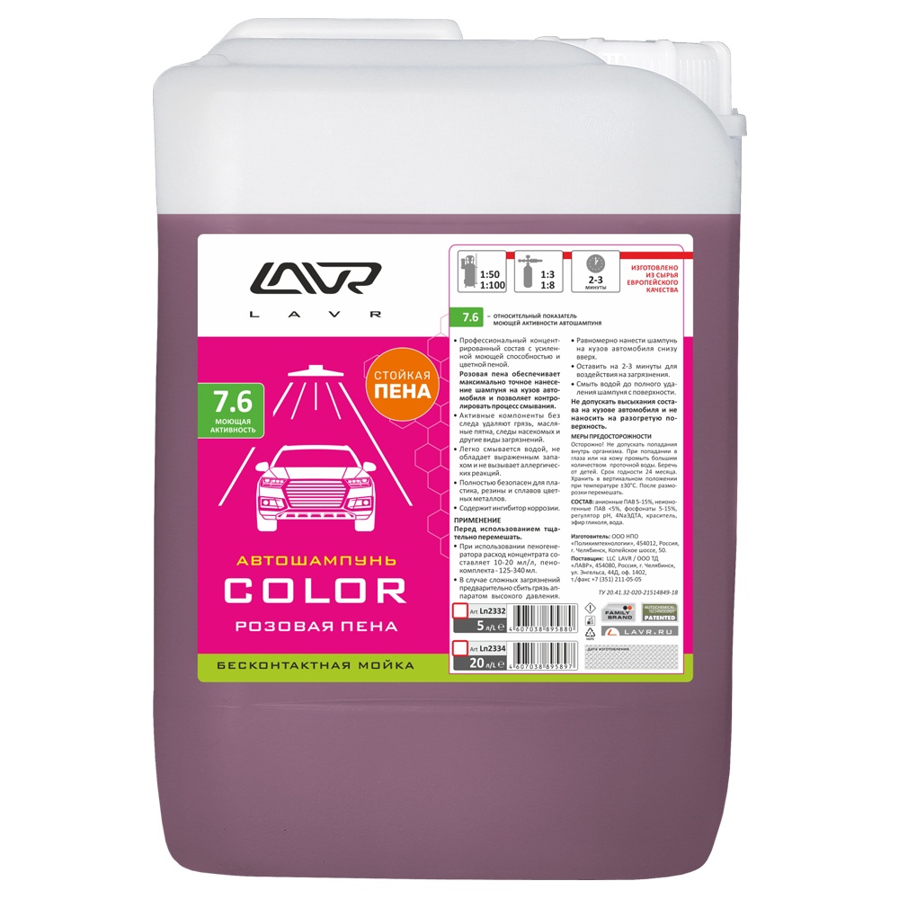ln2332 Автошампунь для бесконтактной мойки "COLOR" розовая пена 7.6 (1:50-1:100) Auto Shampoo COLOR 6,1 кг